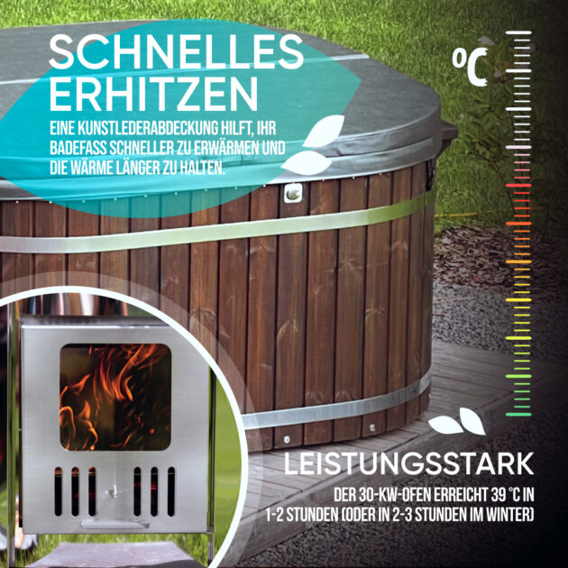 Heizdauer: Im Sommer 1-2 Stunden, im Winter 2-3 Stunden.