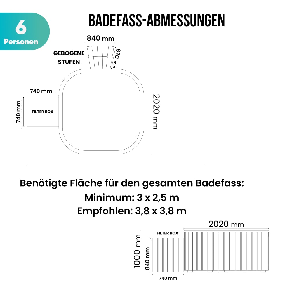 - 6-Personen Hot Tub mit Acryl-Einsatz (2585€)