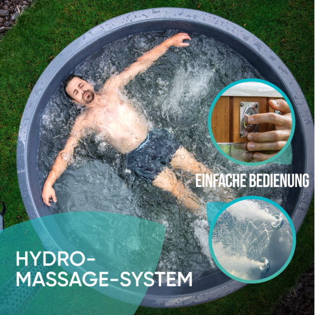 Das Hydrodüsen-System im Hot Tub mit Whirlpool stößt Wasser unter Druck aus und sorgt so für eine wohltuende Entspannung Ihrer Muskeln und Gelenke. Es hilft, Verspannungen zu lösen und fördert die Entspannung.