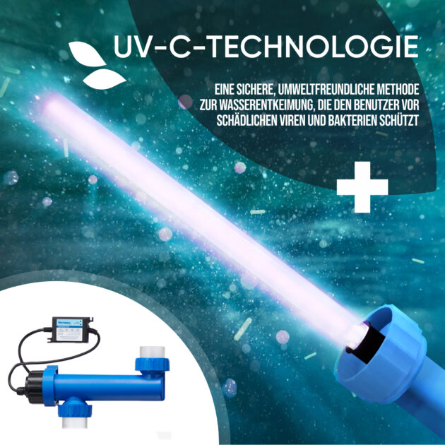 Die UV-Lampe hilft, die Menge der zur Wasseraufbereitung benötigten Chemikalien um bis zu 80 % zu reduzieren. Die fortschrittliche UV-C-Technologie baut effektiv Chloramine ab, die für den unangenehmen Chlorgeruch verantwortlich sind sowie potenzielle Verursacher von roten Augen, Hautreizungen und Atembeschwerden. Diese Technologie ist mit allen Wasseraufbereitungsprodukten kombinierbar, um das Wasser bis zu einigen Monaten lang sauber zu halten.